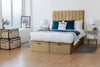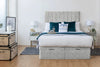 The Florence Ottoman Storage Bed with under-bed gas lift storage is a stylish and functional solution for enhancing your bedroom. Featuring a beautifully upholstered design, this bed showcases a lined headboard that adds texture and elegance, making it a striking focal point in any space.